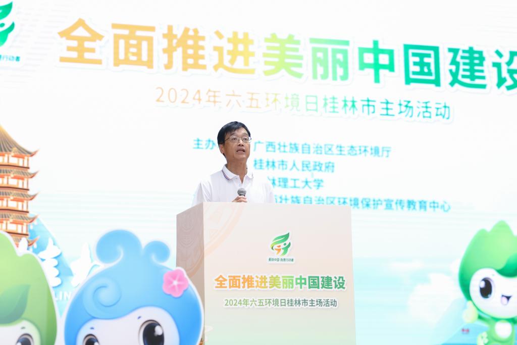 在第53个世界环境日到来之际,6月5日上午,由自治区生态环境厅、桂林市人民政府、桂林理工大学主办的全面推进美丽中国建设——2024年六五环境日桂林市主场活动在我校雁山校区综合体育馆举行。桂林市人民政府二级巡视员周作智,我校校长王敦球,党委常委、宣传部部长叶昊,桂林市生态环境局局长张晓阳,自治区桂林生态环境监测中心主任蒋永光出席活动,桂林市相关部门负责人,有关企业代表,获奖代表,我校相关部门负责人、师生代表,媒体记者,桂林市环保社会组织、环保志愿者代表约350余人参加本次活动。