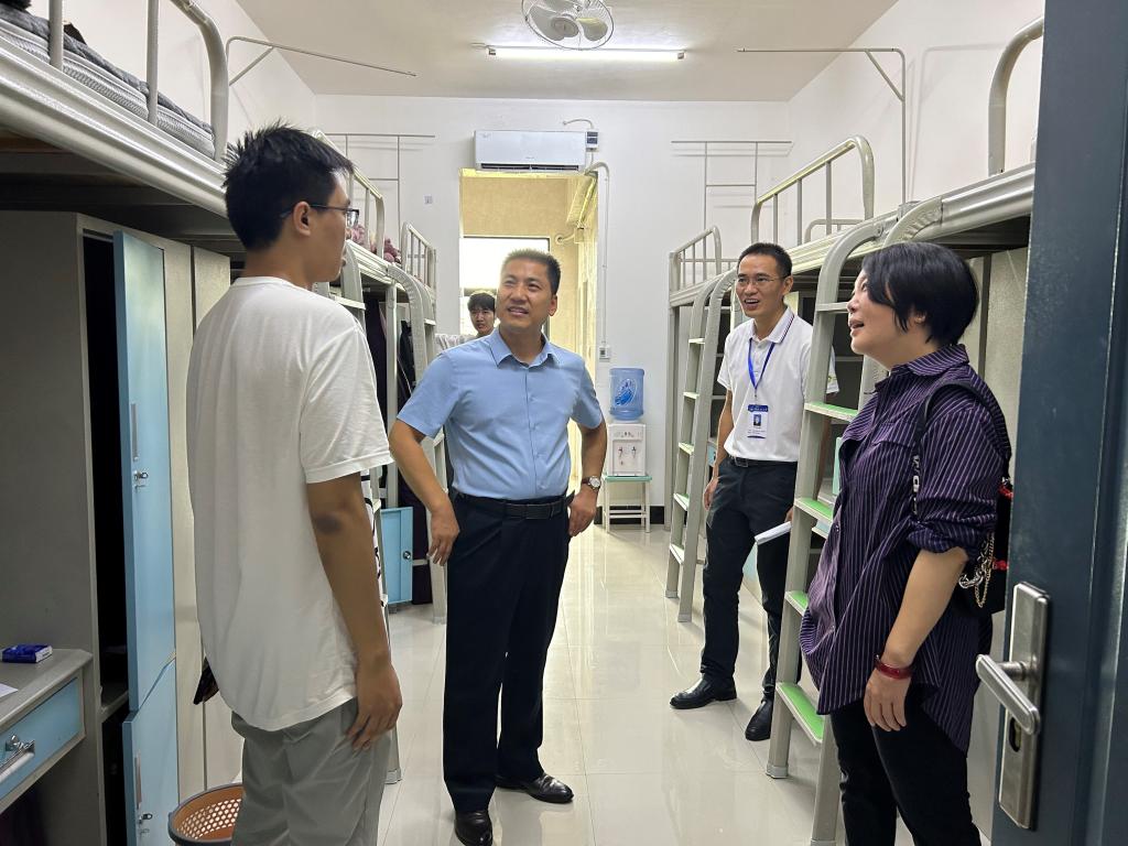 上午,学院党委行政主要负责人带队走访迎新报到点、新生宿舍。在走访中,学院领导逐一询问新生报到注册、入住宿舍、生活保障等情况,并耐心细致地解答同学们提出的各种困惑。行政主要负责人强调,作为大学新生,一要尽快转换角色,调整状态,更好的适应环境;二要提高安全防范意识,注意用水、用电以及防诈骗等安全问题;三要对学校、对专业充满信心,全身心投入到学习中。