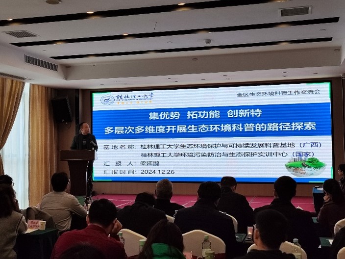 为推动广西区科普教育基地科普展示展教功能发展,加强基地交流联动,提升基地科普服务能力,扩大科普活动影响,自治区生态环境厅于12月25-26日在钦州市举办2024年全区生态环境科普工作交流会。学院副院长朱宗强教授携同实验室主任梁延鹏、教师代表李炜轩参加此次会议。