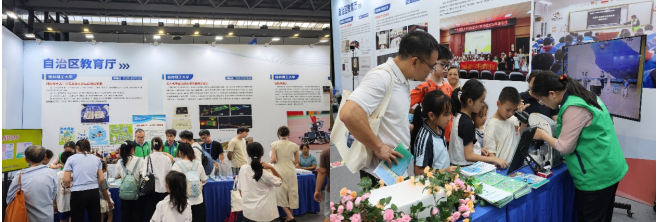 国家生态环境科普基地(桂林理工大学环境污染防治与生态保护实训中心)参与了重点科普成果展示。基地以“绿色守护者:环保科普创新与实践成果展”为主题,展出了环保科普绘本、环保科普视频和太阳能供电船载一体式污水处理装置,并设置了“污泥里的世界”和“美丽的仙境”两个科普互动实验。活动现场吸引了许多公众参与体验,通过寓教于乐的方式传播环保知识和绿色发展理念。