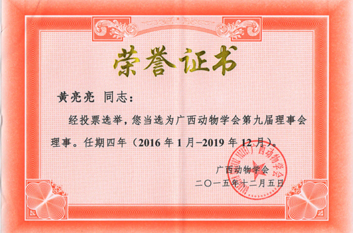 黄亮亮博士当选为广西动物学会第九届理事会理事。