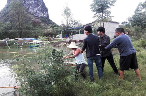 鱼类与漓江河虾的捕捞与暂养现场