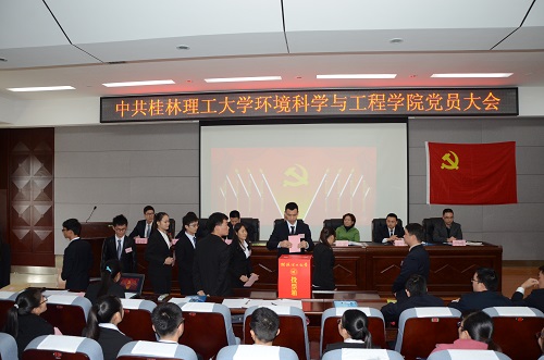 党员大会圆满完成各项议程后,在雁山校区地球学院报告厅胜利闭幕,大会由学院上届党委书记王璐同志主持。