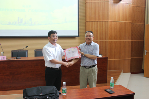讲座教授,在受聘仪式上,学校副校长王敦球教授代表学校为向运荣教授颁发了讲座教授聘书。受聘仪式结束后,向运荣教授在雁山校区萃华楼一楼的学术报告厅作了题为“珠三角大气污染联防联控技术示范区的建设情况及主要成效”的学术报告,报告会由游少鸿副院长主持,学院相关专业的师生近120多人到场聆听了报告。