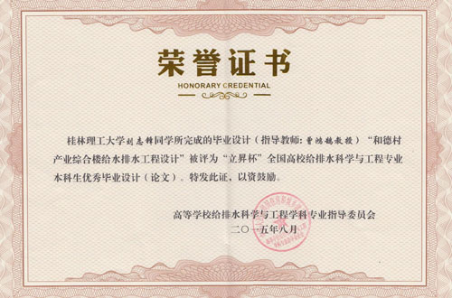 此次大会还分别评选出“多相杯”教改优秀论文10篇、“立昇杯”本科生优秀毕业设计(论文)10篇和“中国给水排水杯”本科生优秀科技创新项目10项,并在大会闭幕式上举行了隆重的颁奖仪式。我校选送的2015届毕业生刘志锋同学完成的毕业设计“和德村产业综合楼给水排水工程设计”获2015年“立昇杯”全国高校给水排水工程专业本科生优秀毕业设计(论文)。此次获奖,进一步彰显了十大赌博网站排行榜