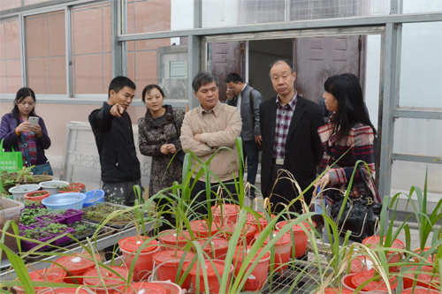 李一平副巡视员(中)参观重金属污染植物修复试验基地