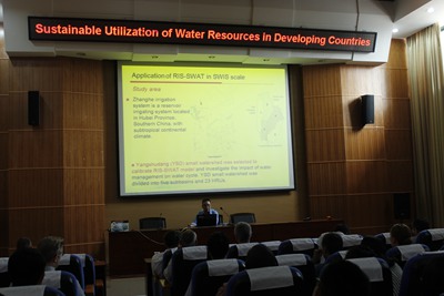 学科特色,并做大会报告“农业地区水资源管理和环境保护”。我校刘杰教授作为特邀嘉宾做了题为“李氏禾人工湿地中六价铬的迁移与解毒机制”的学术报告。另外南非西北大学Frank Winde教授和塞尔维亚贝尔格莱德大学Sasa Milanovic博士分别就“南非喀斯特地貌含水层水质与深层金矿开采的影响”和 “迪纳里德山脉东南部深层岩溶区水资源潜力”做了精彩的学术报告。会议过程中,各位专家生动展示了最新研究成果,使我校学生借此机会领略了国际专家的风采,并对此领域的前沿科学动态有了直观的认识和了解。报告结束后,与会专家在十大赌博网站排行榜