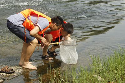 研究生进行水生动物种类调查