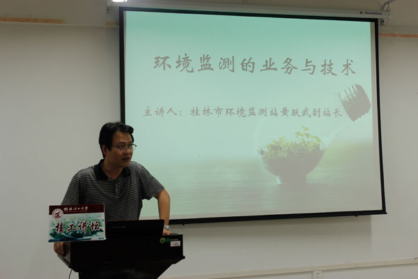 相关专业研究生、本科生及卓越班学生到场聆听了此次报告。报告会上,黄副站长介绍了桂林环境监测站的基本情况,重点介绍了监测站的业务内容,监测技术要求等,使在场学生对环境保护监测工作有了更深入和具体的了解,增强了投身环保事业的自信心和使命感,同时,也对环境监测的教学、科研工作起到了重要的指导作用。