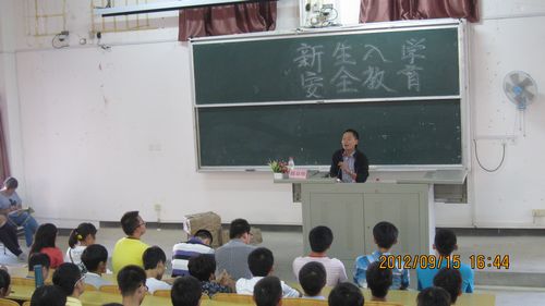 组织2012级全体新生在雁山校区05314教室进行了一次新生入学安全教育,学院党委副书记周章明老师就有关安全问题和知识与新生进行了讲解。