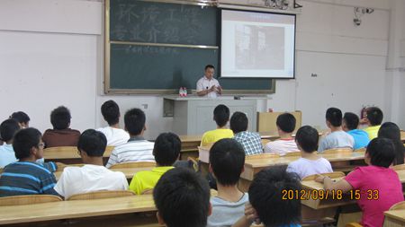 游少鸿副教授在雁山校区06207教室为环境工程专业2012级新生做专业介绍报告。