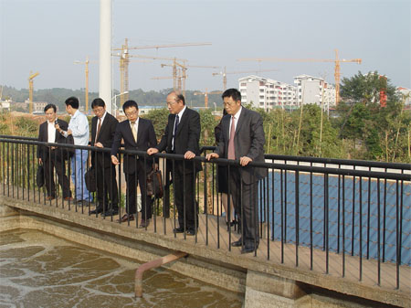 座谈结束后,双方人员来到了雁山校区污水处理站,张学洪校长与和地彰总监共同为“中日膜技术研究中心”举行揭牌。揭牌后,和地彰一行实地参观考察了污水处理站以及十大赌博网站排行榜