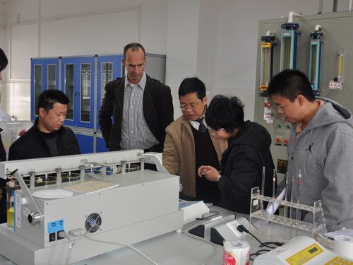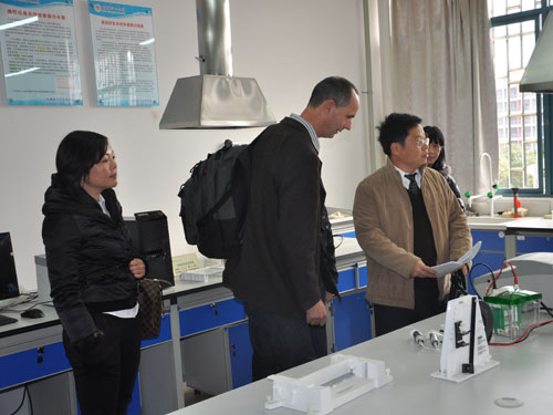 2011年12月13日下午,应学校邀请,欧盟中国流域管理项目专家,荷兰水生生物学家Reinder Torenbeek 教授在学校副校长吴志强教授、十大赌博网站排行榜 副院长曾鸿鹄教授以及相关教师的陪同下到参观了十大赌博网站排行榜 雁山校区教九楼相关实验室,并与正在开展实验的学生进行英语交流。