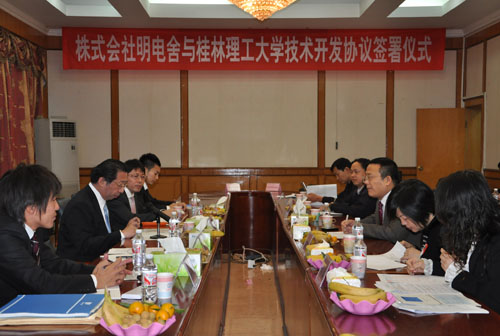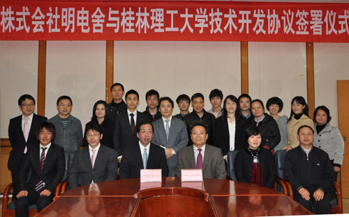 与日本明电舍株式会社的应用开发研究合同签署仪式在学校教八楼会议室举行。日本明电舍株式会社新规事业推进部部长加藤三千彦、新规事业推进部课长加藤秀生、新规事业推进部主任金森教明、新规事业推进部广濑仁、明电舍统括(上海)商贸有限公司李丹部长,院长王敦球教授、副院长曾鸿鹄教授、副院长方荣杰教授等中日代表出席签署会。学院部分教师及参与该项目的研究生列席会议。经过热烈地商谈,学院院长王敦球教授与日本明电舍株式会社新规事业推进部部长加藤三千彦分别代表双方在共同开发合同上签字,即“陶瓷平板膜组件在再生水与下水处理设备应用研究”项目正式启动。该项目将在我校的雁山校区建设中试规模中水回用设施,这也是继日本、新加坡的项目之后,第一次在中国开展陶瓷平板膜组件中试项目。此次共同开发合同的签署,将进一步推动十大赌博网站排行榜