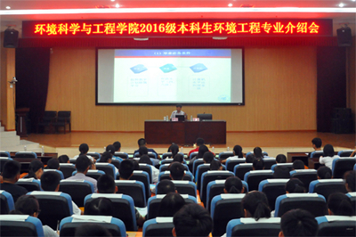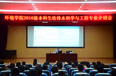 为使2016级本科新生尽快了解专业,适应大学学习和生活,10月8-10日学院张学洪教授、解庆林教授和方荣杰教授分别在雁山校区图书馆报告厅和萃华楼报告厅分别为给排水科学与工程、环境工程专业和水利类2016级新生作专业介绍,学院党委书记王璐、副院长游少鸿、李艳红、党委副书记郝文佳、院长助理黄亮亮,学工组长唐红兵,各班班主任和辅导员参加会议。