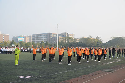辅导员唐红兵、黄兆凡、田明浩老师出席并参与到广播操比赛中。
