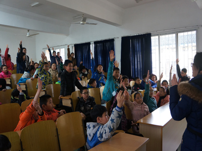 小朋友积极举手竞答