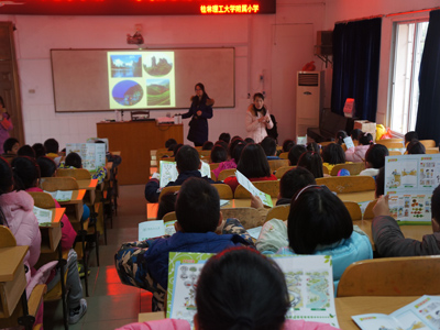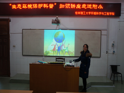 “生态环境保护与可持续发展科普教育基地建设”课题组成员与学院志愿者们走进桂林理工大学附属小学,面向该校部分小学生开展了环保知识宣传讲座。