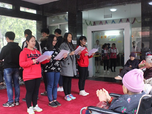 主持人队和翰林文学社的同学们带来了激情饱满的诗朗诵,桂林医学院护理学院还展示了礼仪操等等,老人们和蔼的笑容给了志愿者们极大的鼓励,此次活动在温馨的氛围中结束。