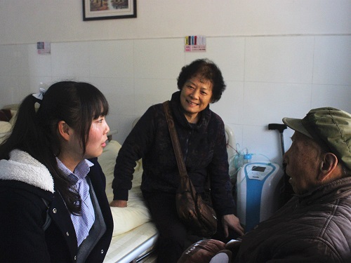 下午三点,揭牌仪式正式开始。唐红兵老师首先进行了简短的致辞,他对辛勤奉献的青年志愿者们给予了高度肯定。接下来,唐老师与夕阳红养老院副院长林凯倩及桂林医学院团委书记秦芳共同为桂林市夕阳红养老中心志愿服务基地揭牌。与此同时,两院志愿者们带着事先准备好的剪纸等物品开始了慰问活动。同学们一进入老人们的房间便纷纷行动起来,满怀热情地走到老人身边陪他们聊天,嘘寒问暖,还用红色的卡纸给老人们制作了许多美丽的窗花。老人们看到志愿者后脸上洋溢着灿烂的笑容,整个房间里充满了欢声笑语。