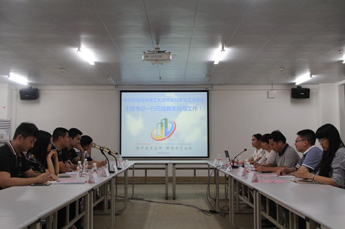 王书记一行的到来表示热烈欢迎,并介绍了该院目前的办学情况和建筑设备与环境工程系应用型本科工作的现况,周舟书记分别从应用型本科班学生党员发展标准、程序等党建工作、学工管理中的安全教育工作、学风建设和英语四级管理办法、在校获奖情况以及贫困生认定和排序方法等方面作了详细汇报。并提出了目前阶段还亟需解决的一些问题;入党积极分子党校学习的结业证书是否予以认可;发展党员的过程中如何更好地进行共同培养;以及教育系统成绩未能同步、重修对接不畅等问题。