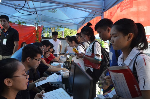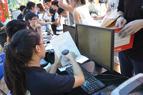 采取了多台机器分别录入信息的方式,在登记同时发放寝室钥匙。这种一站式服务简化了入学手续,新生报到确认、缴费情况确认、免费手机卡领取依次进行,为广大新生报到带来了极大的便利。
