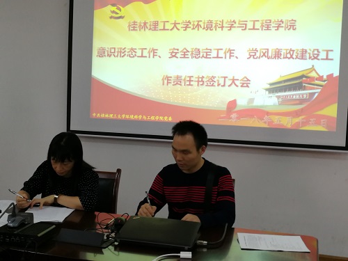 会上,学院相关负责人与责任对象签订了2018年度安全稳定目标管理责任书。