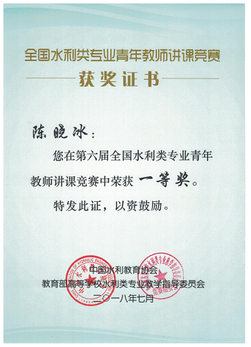 陈晓冰老师参加了此次竞赛,并荣获一等奖。