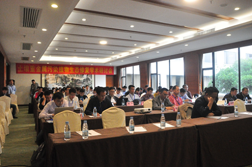 研讨会开幕式上,我校党委常委、副校长王敦球教授致词,代表桂林理工大学对各位领导、嘉宾和专家学者的到来表示热烈的欢迎,简要介绍了学校的发展概况,以及近年来我校环境学科取得的成就,希望本次研讨会的举办能为全体与会人员搭建高水平的学术交流平台,促进我校环境学科的新发展。会上,刘仲齐研究员等专家就《重金属污染农田水稻安全生产技术研究进展》、《中南镉砷污染农田综合防治与修复技术示范》、《重金属超累积植物种质创新、规模化繁种技术与设备研制》、《土壤重金属植物高效萃取化学强化、活化剂研制与设备创新》、《微生物强化修复植物高效萃取技术与生物修复菌剂研制等十几个研究课题做了大会报告。