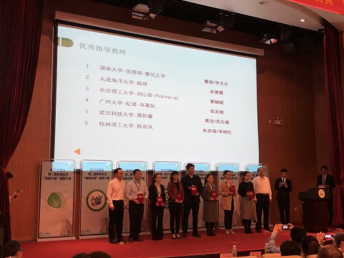 “桂工环境人”队(队员:陈双凤、黄凤艳、刘志锐,指导教师:朱宗强/张立浩)和“绿色E家园”队(队员:顾中玮、聂小燕、宾娟,指导教师:李艳红/唐沈)分别斩获团体一等奖和二等奖的成绩。