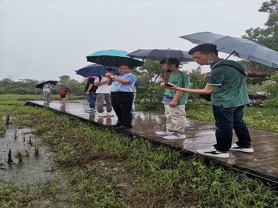 然后,一行人前往会仙湿地进行参观实习。在会仙湿地生态环境考察过程中,吴志强教授进行现场教学,向同学们介绍了会仙湿地的动植物特征特点以及在环境生态领域的应用,以一个个鲜活的案例加深了同学们对湿地的认识,给同学们上了一堂生动的实践课。