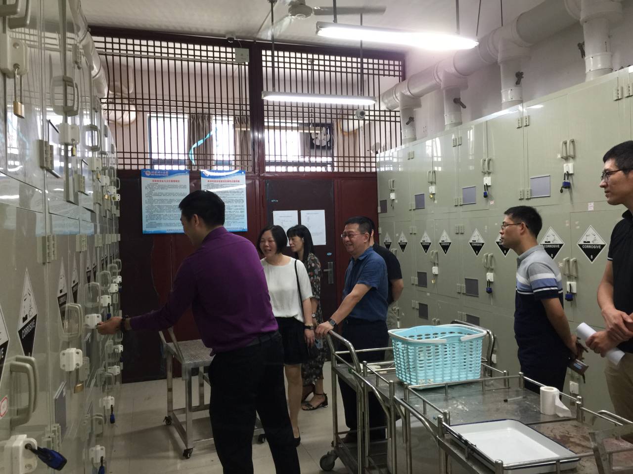 本次检查重点对各实验室的易燃、易爆、剧毒等危险品管理、仪器设备使用以及实验室防火、防盗等安全制度的落实进行检查督促。从所到实验室检查情况来看,绝大多数实验室重视实验室安全、卫生等各项管理工作,实验室整体安全、整洁,实验室管理职责明确,仪器设备摆放规范整齐,化学危险品安全措施有效,较先前有很大改进,对个别实验室实验药品分类管理及实验操作规范等问题提出了整改要求。