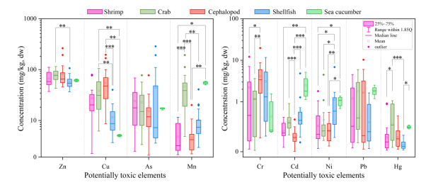 该研究系统评估了北部湾商业捕捞无脊椎动物中PTEs的污染状况,为北部湾海洋生态保护和渔业资源管理提供了重要科学依据。研究结果提醒相关部门应加强对海洋无脊椎动物中PTEs污染的监测和管理,以保障海洋生态安全和人类健康.