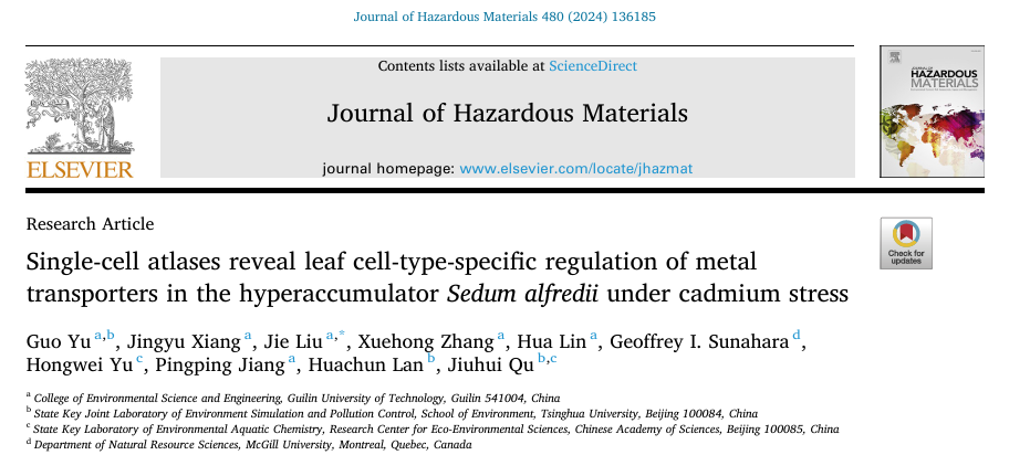 在著名学术期刊Journal of Hazardous Materials上发表题为“Single-cell atlases reveal leaf cell-type-specific regulation of metal transporters in the hyperaccumulator Sedum alfredii under cadmium stress”的研究型论文,由我校十大赌博网站排行榜