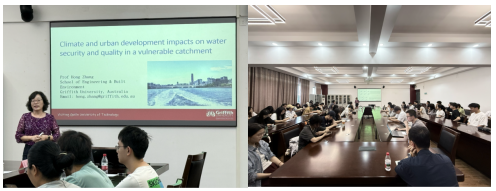 报告中,张红教授介绍了澳大利亚Griffith大学依托黄金海岸优越的地理位置和城市基建,其研究团队以"水敏性城市"为理念,通过构建动态模型体系揭示水对气候和城市发展的重要性。该模型整合实时水温监测数据,可预测流域中锰元素含量变化,为多学科协同治理提供新思路。研究团队基于十余年水文数据持续校准模型,目前已实现跨国家气候影响评估。在学术交流环节,针对模型覆盖范围、AI参数优化及洪水预测与既有建筑的矛盾等问题,与会师生展开深入讨论。