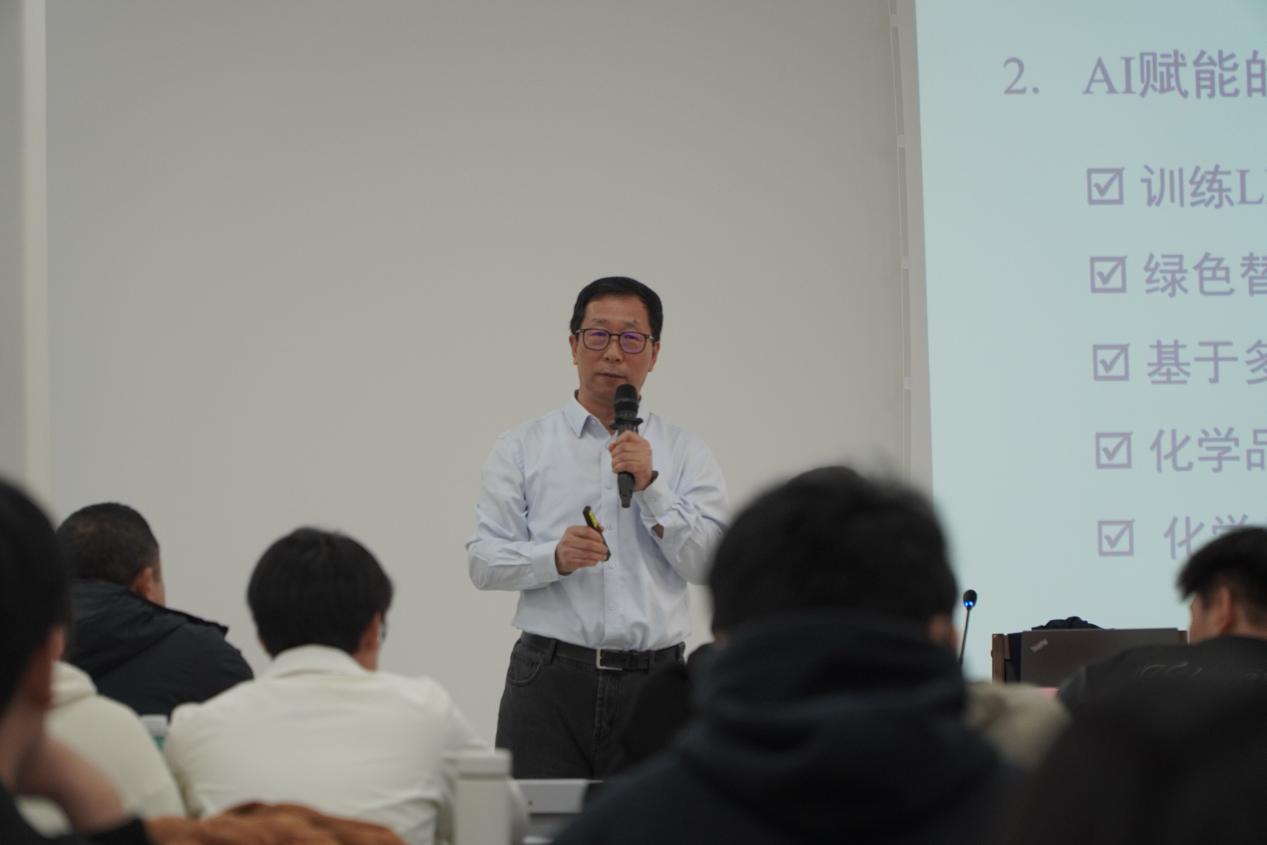 报告中,陈景文教授从合成化学品的“双刃剑”属性切入,指出全球化学品数量已超700万种,PFAS等“永久性化学品”的残留问题凸显了新污染物治理的紧迫性。他系统阐述了“风险=暴露×危害性”评估框架,剖析传统防控手段的不足,并提出“源头治理”的转型路径。其中,陈教授重点介绍了AI在预测化学品全链条风险中的前沿应用,包括AI预测模型、PBT筛查技术及智能评估系统(如ICAS)等,为学生开展创新研究指明了具体方向。