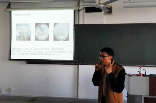 环境工程教研室邀请广西师范大学的于方明教授走进课堂给环境工程“卓越工程师教育培养计划”实验班同学教授“土壤污染控制技术”。于教授毕业于中山大学,师从著名植物修复专家仇荣亮教授。于教授本次授课主要给同学介绍了耐重金属微生物的筛选、植物提取技术成本估算和小型植物修复案例分析等内容。通过本次授课,同学们对如何开展环境保护工作有了更加清晰深刻的认识,并且进一步树立了严谨的科研观念,收益良多。