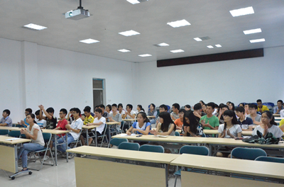 同为我校99级毕业的王宪亮,一开讲便给同学们讲述当年自己在桂工上学的日子,让同学们倍感亲切。紧接着,王宪亮总经理详细地给同学们介绍了地源热泵的工作原理、组成和应用。地源热泵被大量运用于空调技术,其中利用水与地能进行冷热交换作为水源热泵的冷热源,与传统空调相比,在同等工作情况下,只需消耗约百分之五十的能源。由于不利用氟利昂、天然气等燃料,可以大大减少对环境的污染,十分绿色环保。最后,王宪亮总经理介绍说,地源热泵的应用也受地质和气候的影响,在相对地质较软的区域,可能成本较低。在一年四季鲜明的地域则对地表温度影响较低。这方面也是未来地源热泵技术的研究重点。而与传统空调同样拥有的一个缺点就是制温时间较长,所以未来的发展趋势就是向着远程智能化发展。