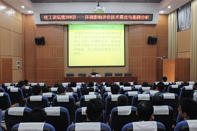 学子作关于“环境影响评价技术要点与案例分析”报告。会议由学院副院长游少鸿老师主持。