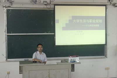 讲座伊始,代老师向大家介绍了自己最值得回忆与留恋的大学生活,讲述了自己当时的经历与感受,并分别从学习、社会工作与社团活动以及业余生活对同学们提出建议,希望同学们珍惜当下光阴,且有一个明确的目标为之奋进。紧接着,代老师又以自己和大学舍友为例,向大家分析不同选择的不同经历与后果,告诫大家,机遇可遇不可求,但最重要的是真正的了解自己,永不为自己做出的结果而后悔。同时,对于职业规划与现实的困惑、遗憾做出解释。最后,同学们踊跃提问,整个会场气氛十分活跃,老师也对我们以后的选择与发展问题进行了详细的解答。