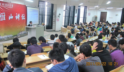给排水、环境专业的雁山学子做了题为“三峡库区水环境安全研究概况”的学术讲座。学院副院长朱义年教授、学院党委副书记周章明老师及部分教师代表出席了讲座。讲座由周章明副书记主持。
