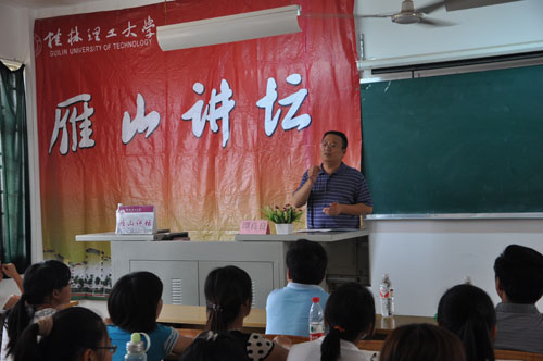 在讲座开始前,学校在现场举行了简短而隆重的仪式,学校副校长吴志强教授代表学校给谭良良董事长颁发了聘书,聘请谭良良董事长为桂林理工大学客座教授。