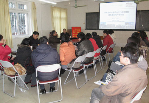 会议室做了题为《微生物燃料电池(MFC)同步降解偶氮染料与产电研究》专题报告,相关研究领域的老师和研究生参加了报告会,会后胡勇有教授与十大赌博网站排行榜