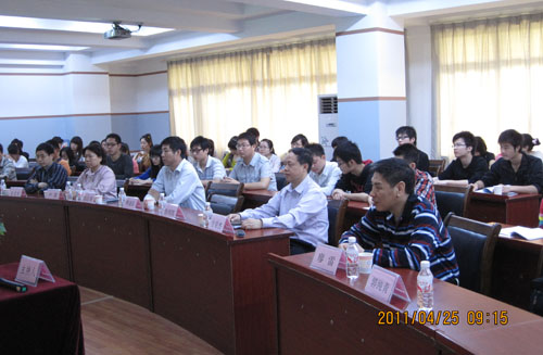 朱义年副院长发表讲话,他说,研究生学术年会给在校研究生提供了一个很好的交流平台,同学们要积极参与其中,提高自己的科研学术能力。希望在同学们的努力下,使研究生学术年会越办越好。