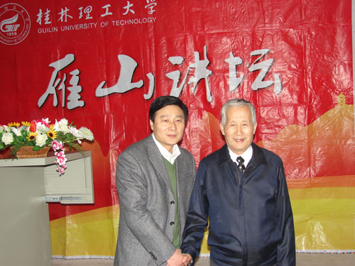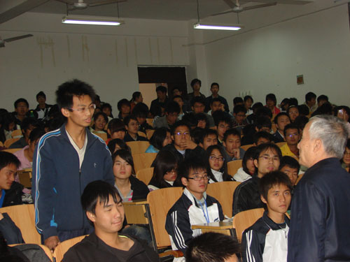 学子讲学。本场讲座由校党委副书记王赣华主持,院党委卢英书记、朱义年副院长、陈余道教授等出席讲座。薛院士一进会场,全场起立鼓掌,表示热烈欢迎。可容纳250人的阶梯教室,座无虚席,还有不少同学一直站着听完讲座。