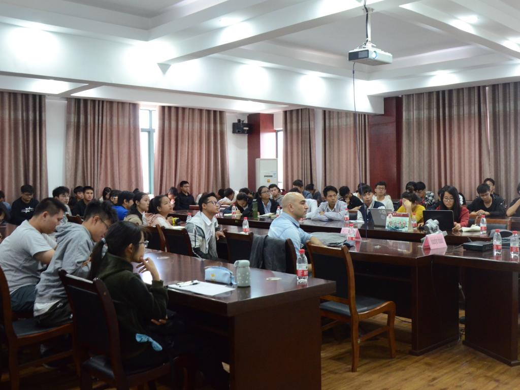 讲座开始,Asfandyar shahab首先对桂林市城市道路的重金属的实验数据进行了分析。Asfandyar shahab从Geo-accomulation指数、生态风险指数、I-go类、空间分布等方面得出了非致癌风险的健康风险评估。其中,Aeed Rad先通过地球上的耕地面积、种植面积百分比以及水资源供应与需求的关系阐述管理资源的重要性。Aeed Rad提出全球还需要改善咸水、淡水、河流湖泊、地下水以及极地冰的资源管理,并且他建议桂林市要想提高水资源利用效率,可以采用滴灌这种传统方法。在会议结束时,同学们就自己心中的疑惑提出来,得到了两位博士讲师耐心解答。最后,两位博士讲师与十大赌博网站排行榜