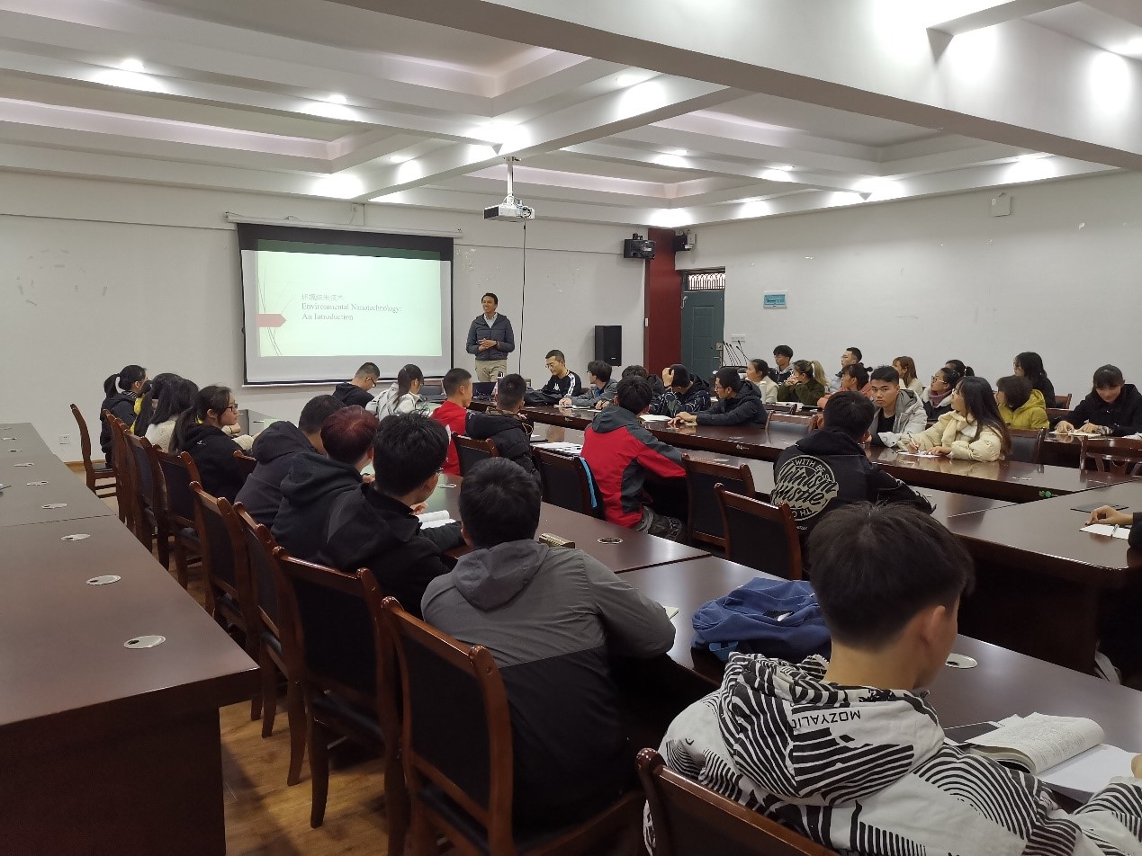 环工18级实验班和给排水18级创新班的同学做为期一周的专题讲座,专题讲座的主题为“Environmental Nanotechnology:An Introduction”。