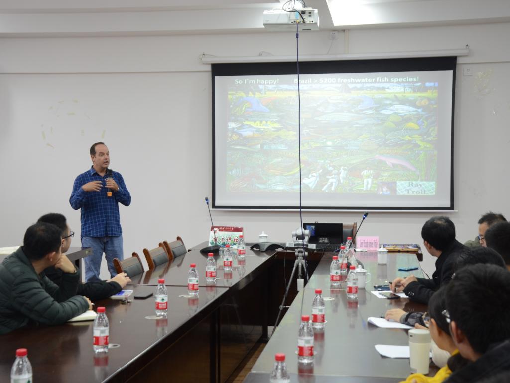 特邀巴拉那联邦大学的Jean Ricardo Simoes Vitule教授于12月16日在雁山校区萃华楼12407会议室做了题为“巴西淡水非本地鱼类入侵的原因及后果”的讲座。约80余师生参加了此次讲座。