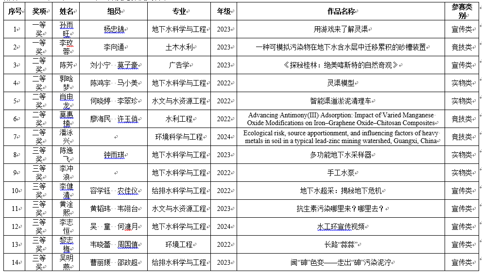 2024年“水·工·环”科技竞赛获奖名单