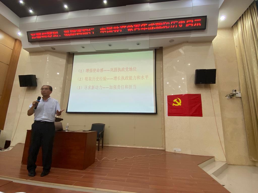 邀请马克思主义学院党委书记王青山教授于6月1日在萃华楼报告厅开展“光荣与梦想,砥砺再前行—中国共产党百年成就和历史启示”专题党课,120余名师生党员参加。